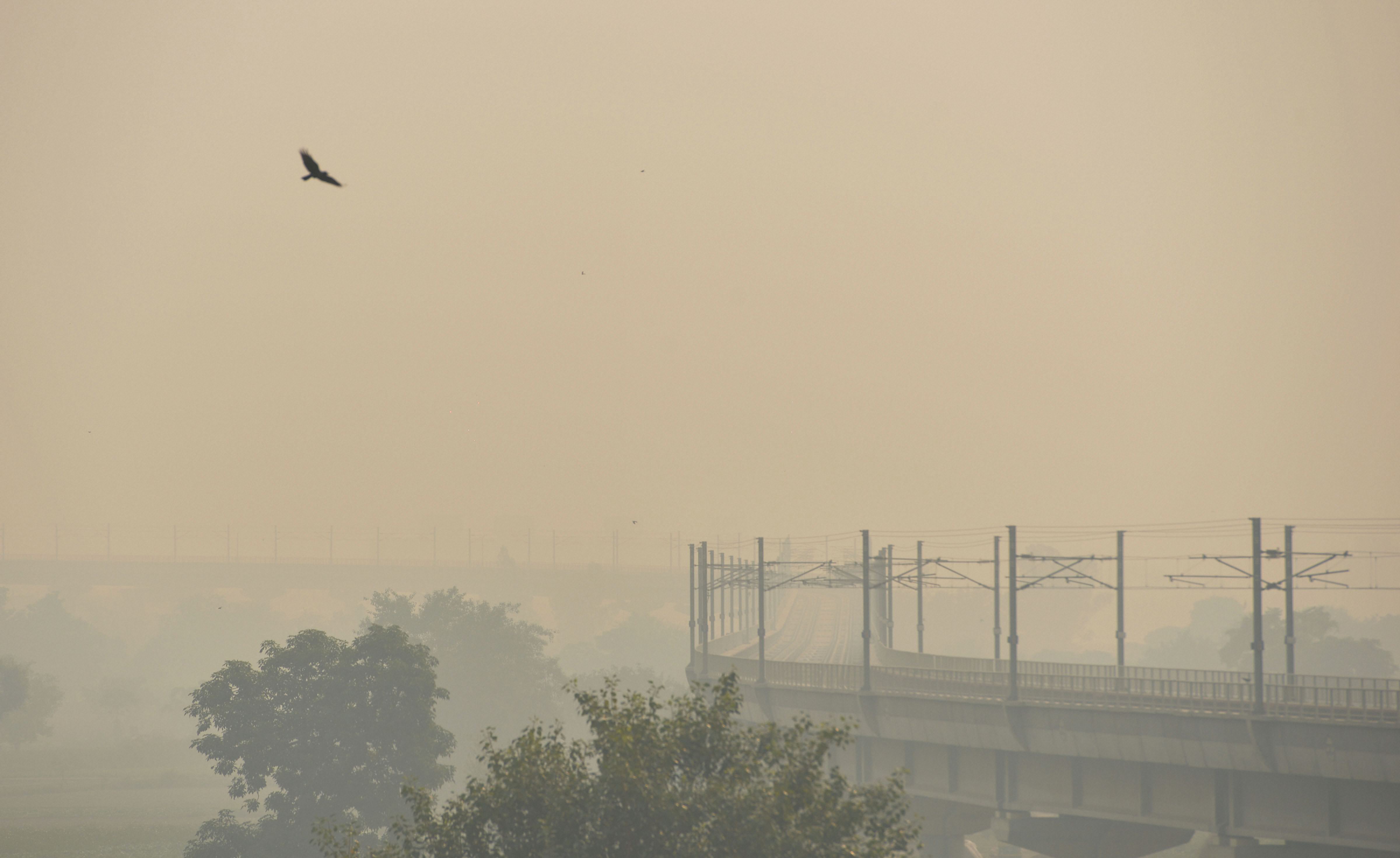 Delhi Metro running amid dense haze and low visibility, in New Delhi on Monday, a day after Diwali. (Photo: PTI)