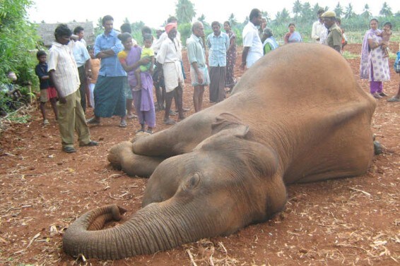 An 18-year-old elephant cow died of electrocution from high-tension electric fences in a farmer’s land at the foothills of the Western Ghats in the Sirumugai forest range in Coimbatore district. (Photographer: V Palaniappan)