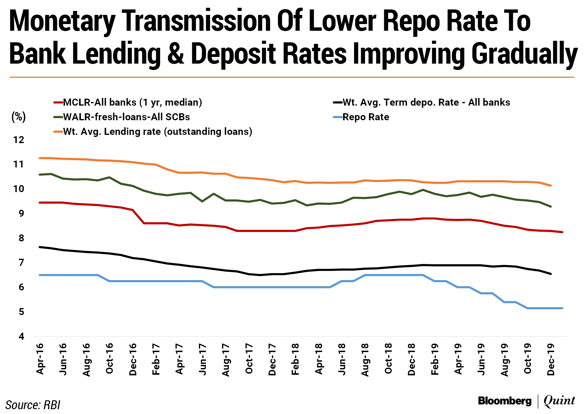 Acknowledging the recent food-driven spike in headline inflation, the Reserve Bank of India now sees it remaining above the 4 percent target over the first three quarters of calendar-year 2020. Outside the use of monetary levers to support growth, key policy measures aimed at easing supply of credit to key and stressed sectors and a long-term repo window for banks for a provision of durable liquidity of Rs 1 lakh crore, were announced. The RBI also announced a fine-tuning of its liquidity management framework to make it more efficient while keeping its main contours unchanged, with the weighted average call rate or WACR remaining the operational rate for monetary policy.