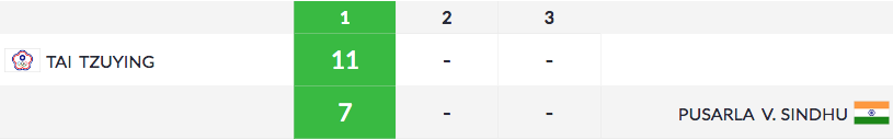 However, Sindhu manages to edge her way back into the game. At the break, the Indian shuttler is trailing 11-7.