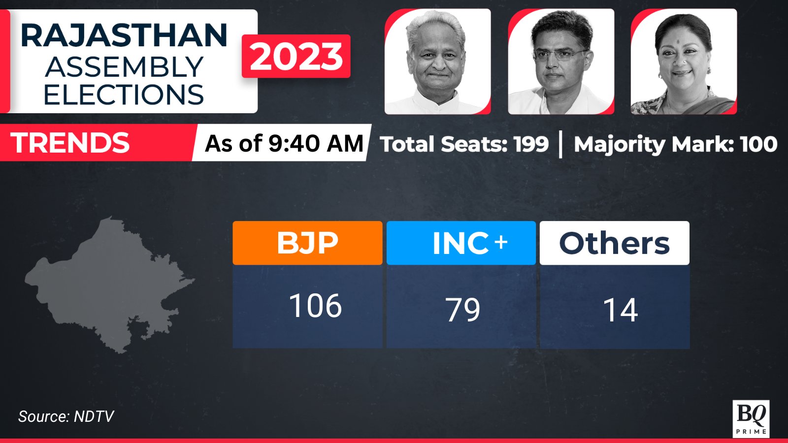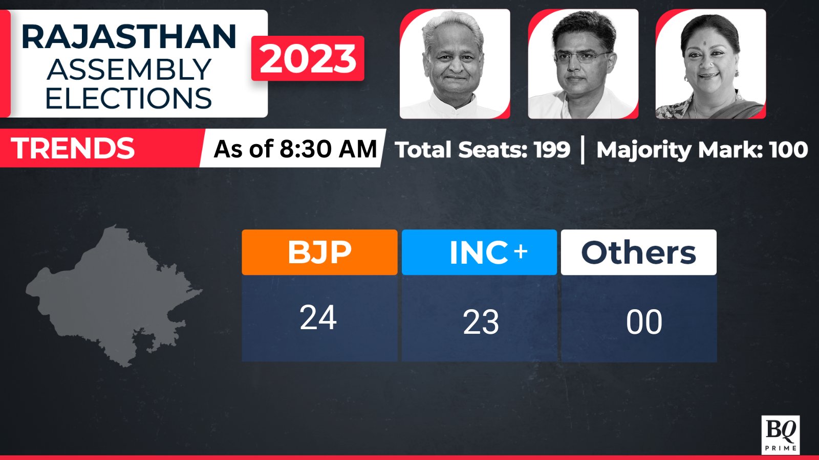 Rajasthan Results: BJP maintains lead, past the majority mark.