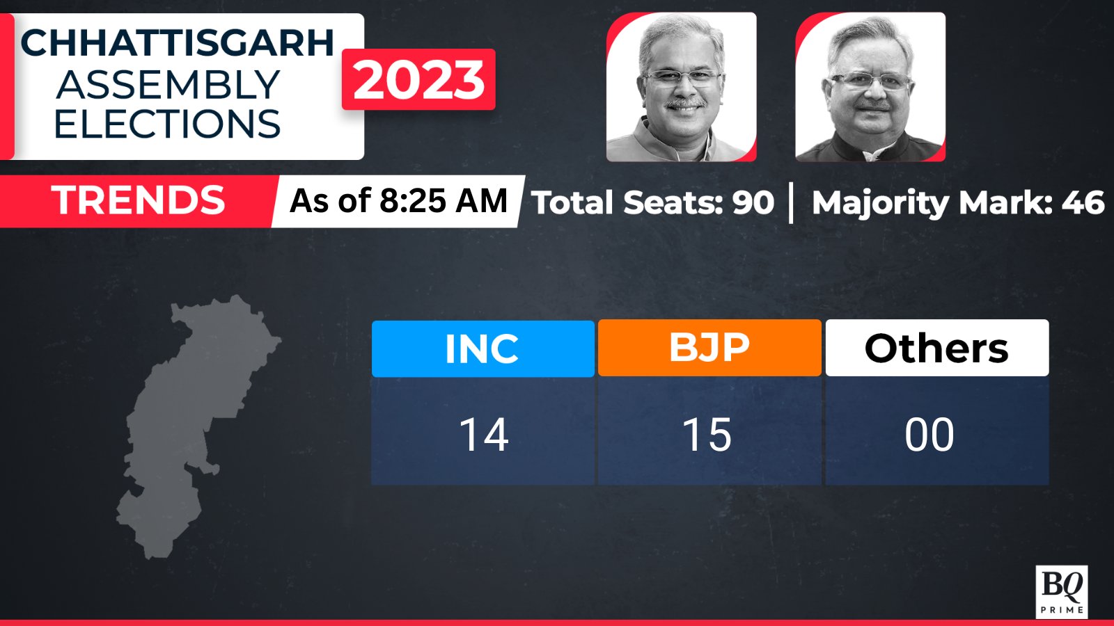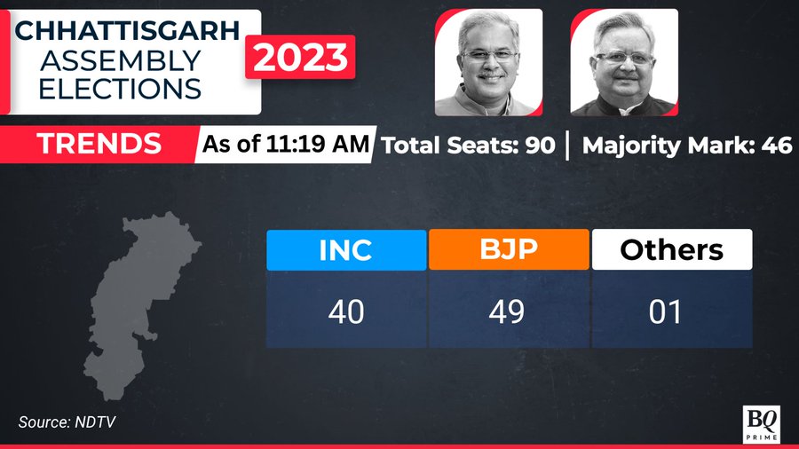 Chhattisgarh Results: BJP maintains lead, past the majority mark.