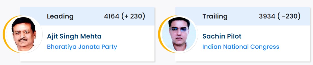 Congress heavyweight and former deputy CM Sachin Pilot is trailing BJP's Ajit Singh Mehta.