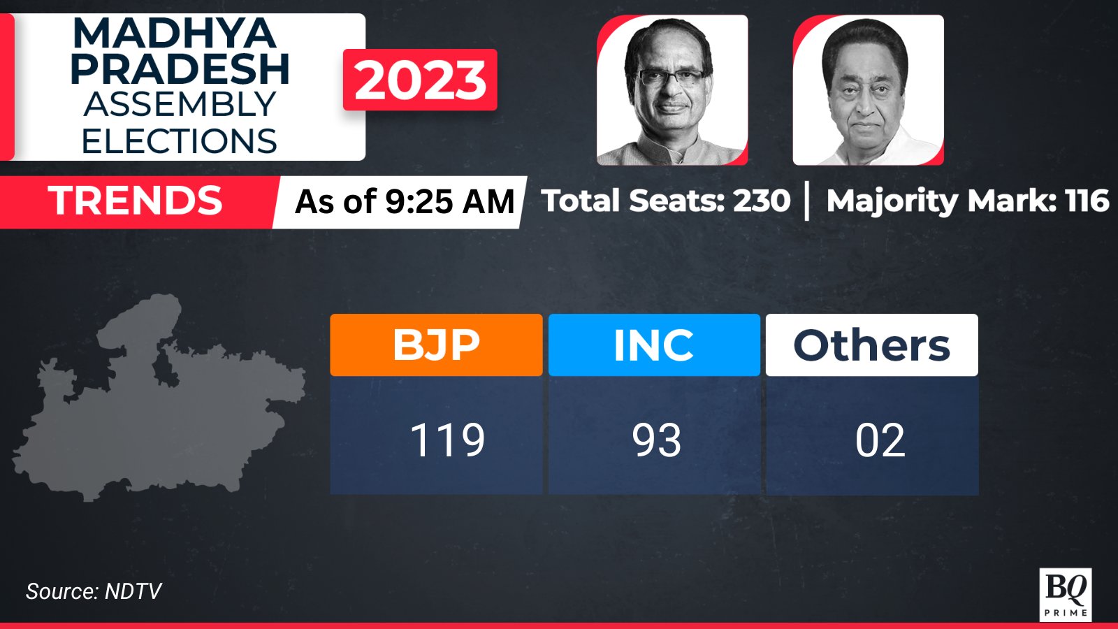 Madhya Pradesh Results: BJP maintains lead, past the majority mark.