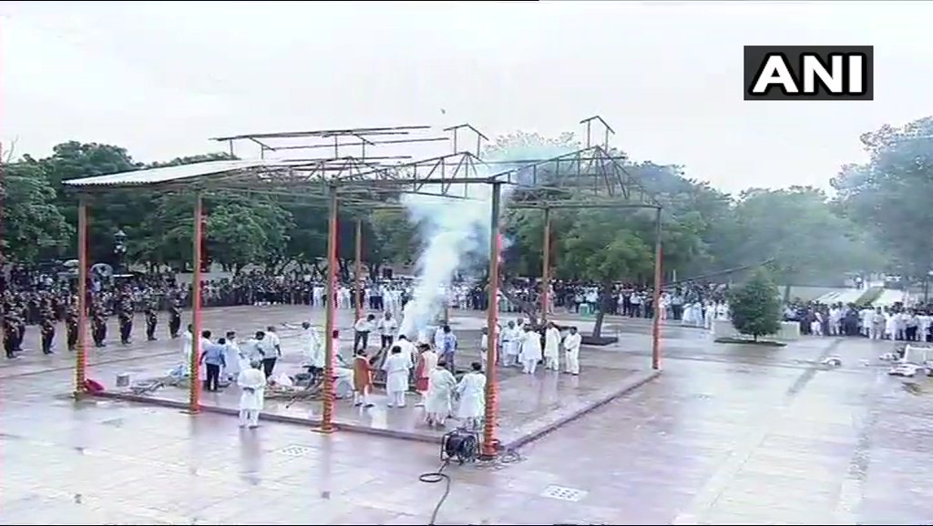 The last rites of former prime minister Atal Bihari Vajpayee was performed by his daughter Namita Bhattacharya at Delhi's Smriti Sthal.