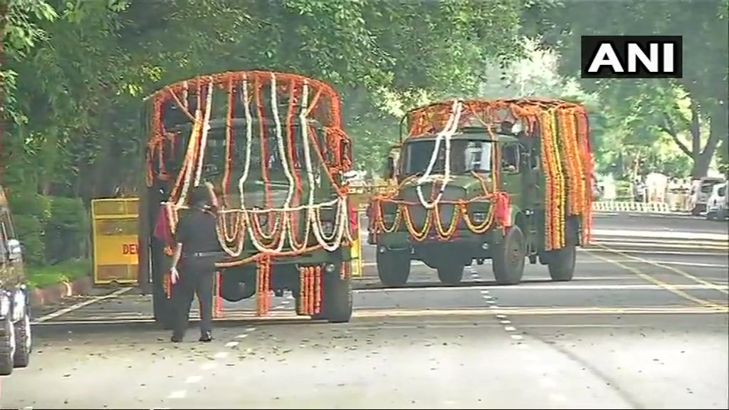 Mortal Remains of Vajpayee Brought to Delhi's Smriti Sthal