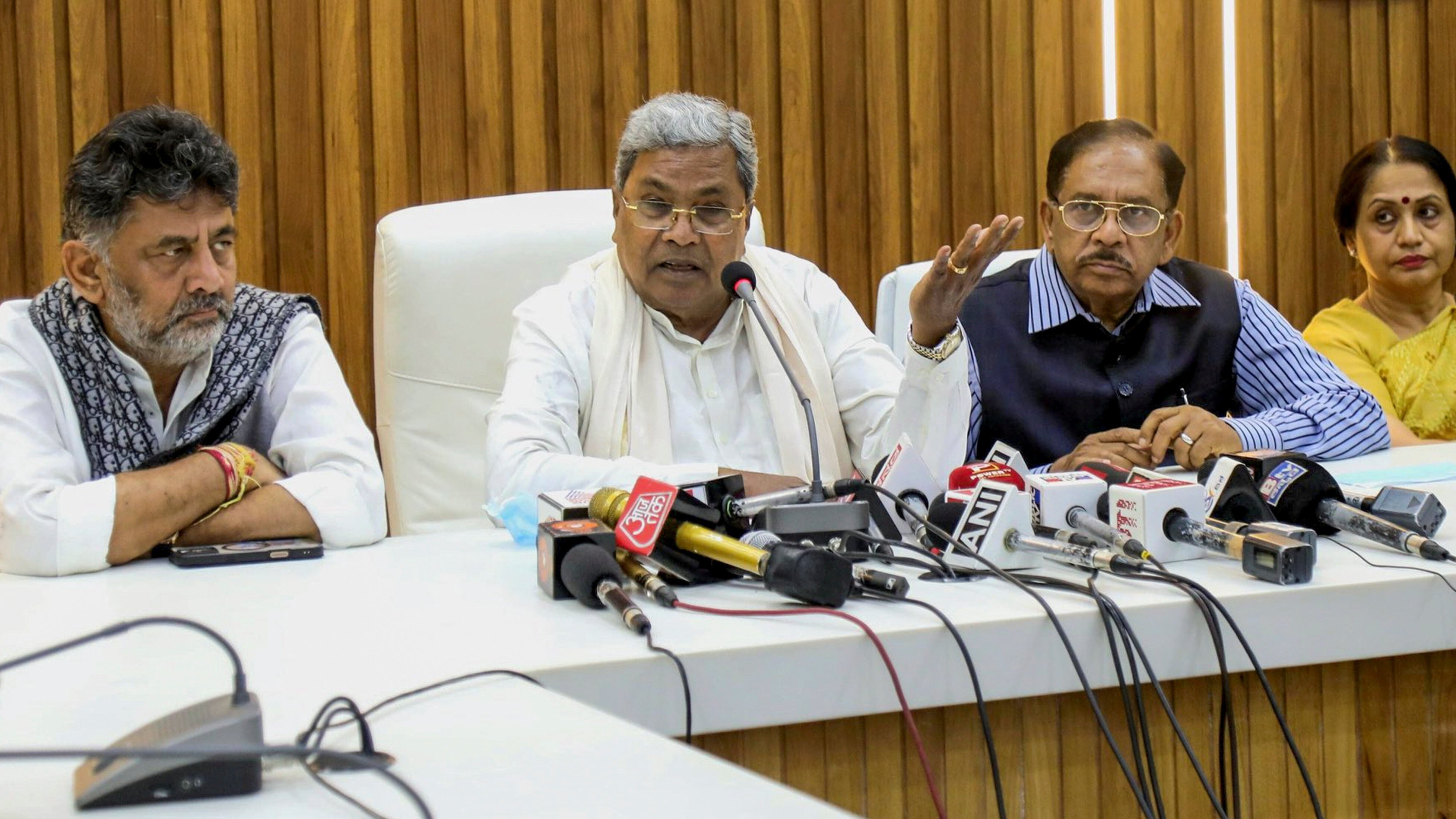File photo of Karnataka Chief Minister Siddaramaiah with Deputy Chief Minister D.K. Shivakumar addresses a press conference regarding the stampede. (Photo Source: PTI)
