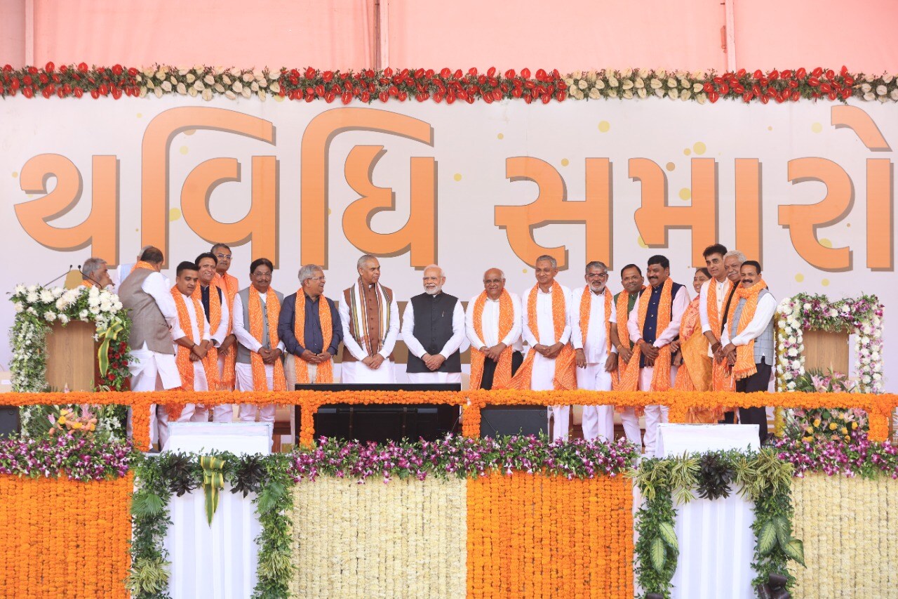 Patel was administered the oath as the 18th chief minister by Governor Acharya Devvrat at a function held at the Helipad Ground near the new Secretariat.