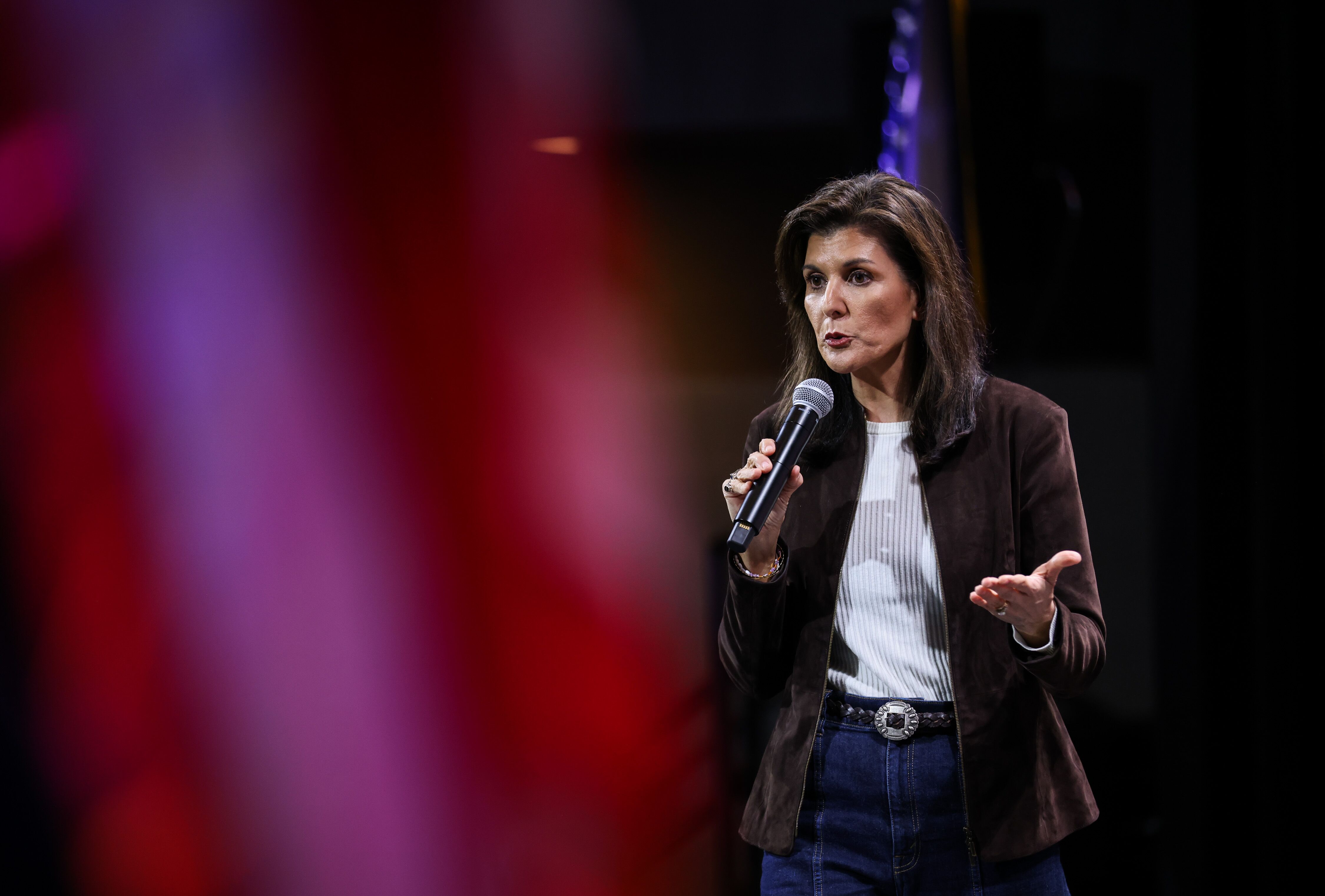 Nikki Haley, former governor of South Carolina and 2024 Republican presidential candidate, speaks during a campaign event at The Etherredge Center in Aiken, South Carolina, US, on Monday, Feb. 5, 2024. Haley tapped both Wall Street and grassroots supporters to raise $16.5 million in January, her campaign said, giving her plenty of cash to continue her longshot bid for the Republican presidential nomination. Photographer: Sam Wolfe/Bloomberg