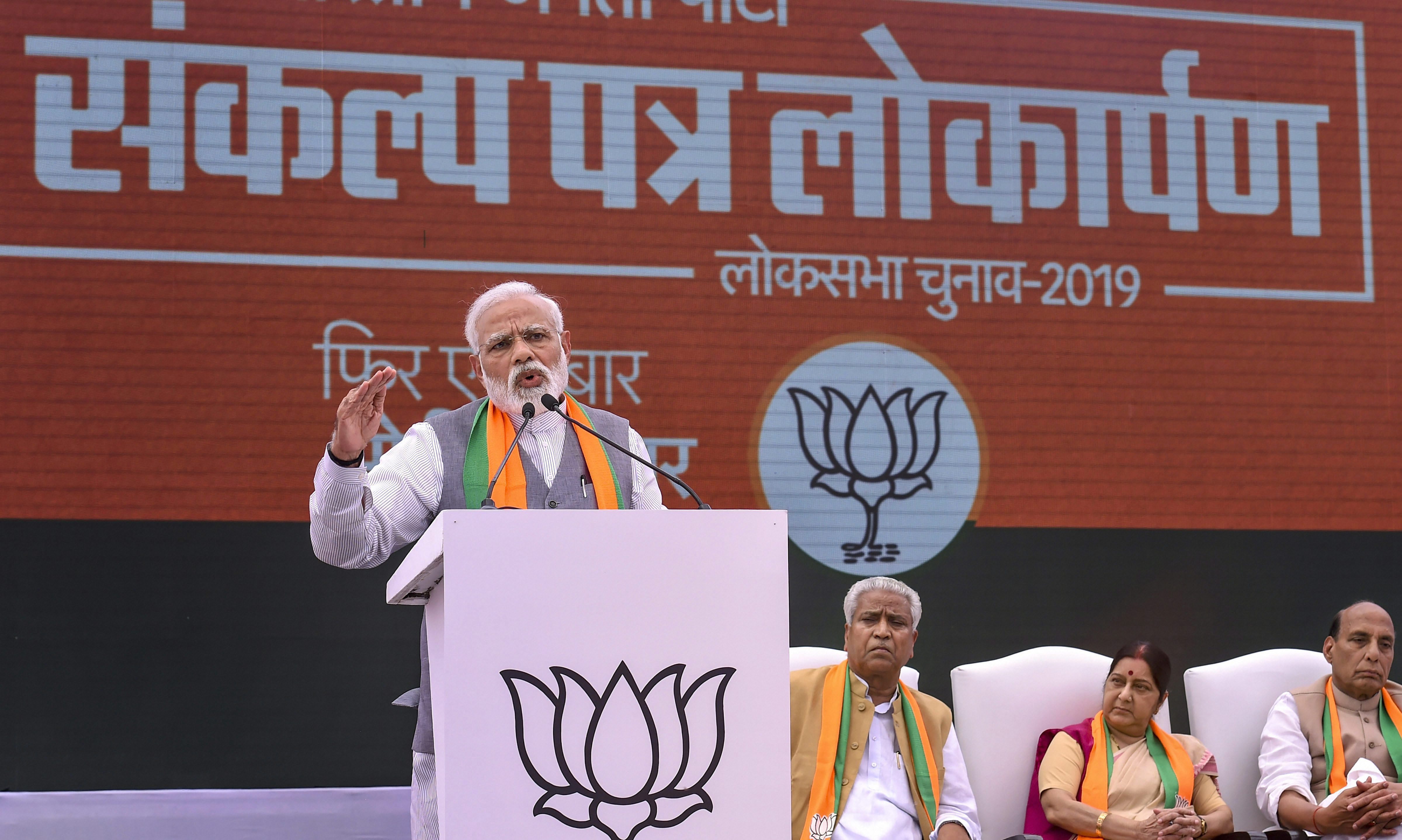 Eyeing to retain power in the elections, the Bharatiya Janata Party pledged to boost infrastructure and enhance farm productivity.