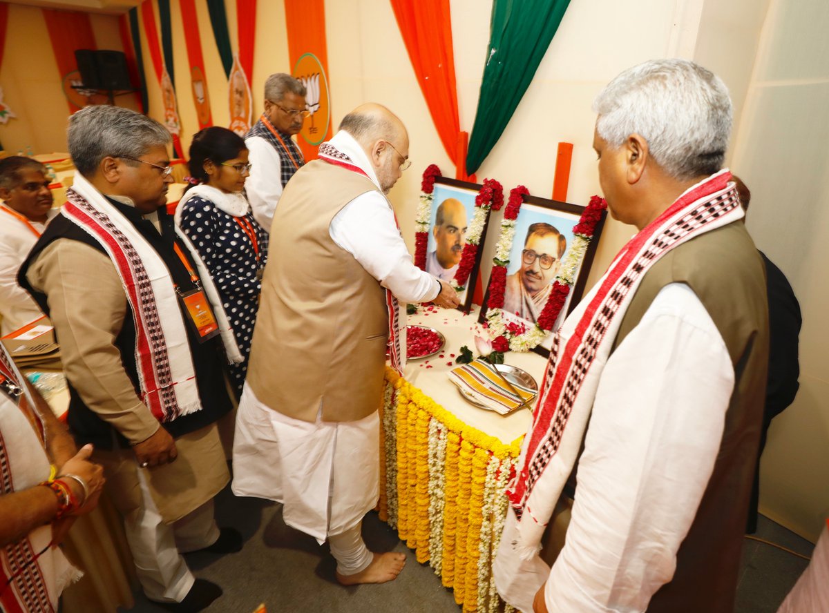 On Saturday morning, BJP President Amit Shah inaugurated the BJP conclave, flanked by his party's office-bearers, at Delhi's Ambedkar International Centre.