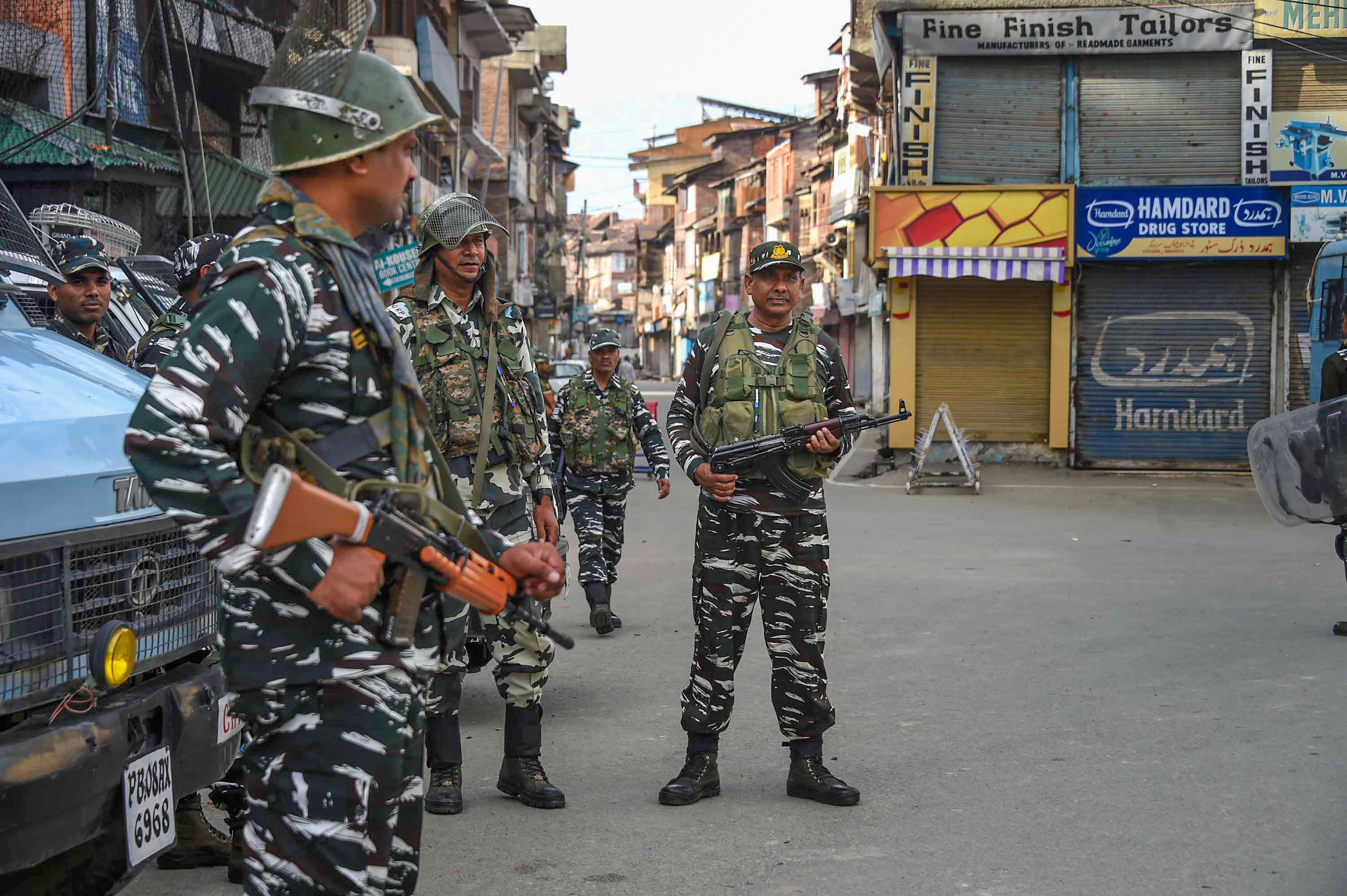 Srinagar: A security personnel stands guard during restrictions following the abrogation of the provisions of Article 370, in Srinagar. (PTI Photo/S. Irfan)