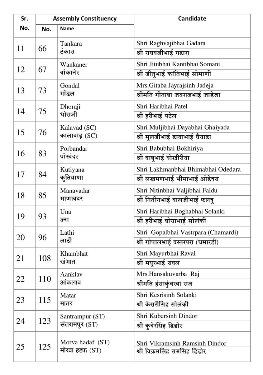 A day after its first list of candidates for the 2017 Gujarat Assembly elections, the BJP released its second list of 36 candidates on Saturday, 18 November.