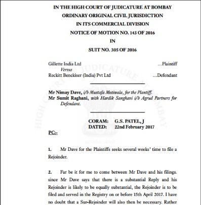 Seemingly exasperated by the delays perpetrated by case counsel in the Gillette India Ltd. versus Reckitt Benckiser (India) Pvt. Ltd., Justice Gautam Patel of the Bombay High Court posted the matter for hearing on November 3, 2020.
