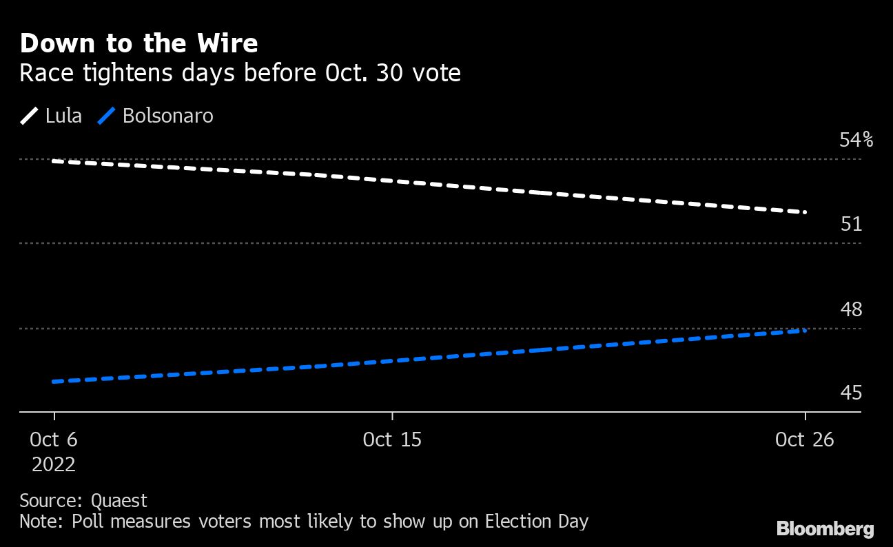 (Bloomberg) -- Brazil's presidential race is still tightening according to a new opinion poll that takes into account voters more likely to show up on election day.
