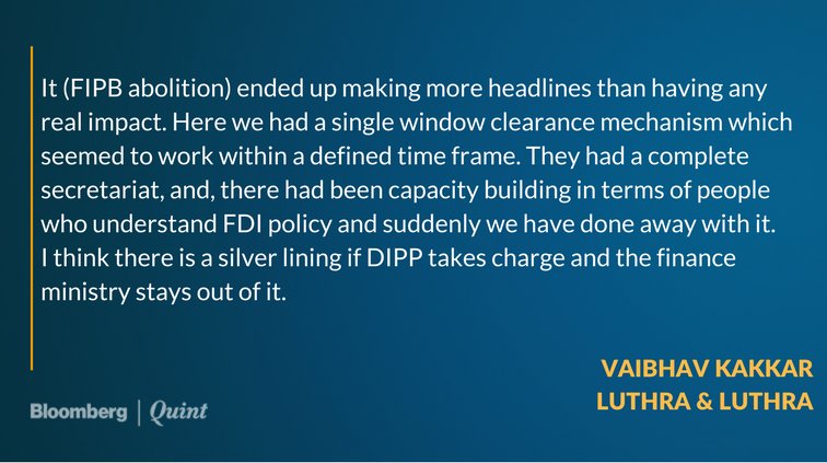 The Foreign Investment Promotion Board has successfully implemented e-filing and online processing of FDI applications. We have now reached a stage where FIPB can be phased out. We have therefore decided to abolish the FIPB in 2017-18. A roadmap for the same will be announced in the next few months.Arun Jaitley, Finance Minister in Budget 2017-18 Speech
