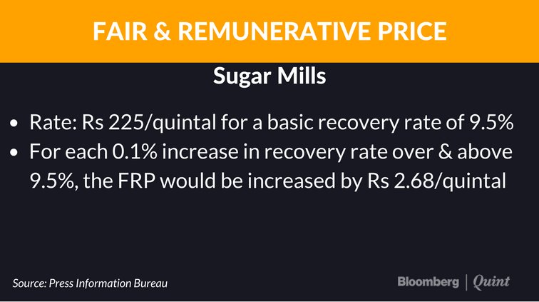 The Cabinet also fixed the fair and remunerative price payable by sugar companies for 2017-18. Companies will have to pay Rs 255 per quintal for a basic recovery rate of 9.5 percent. Thereafter, for every 0.1 percent increase in the recovery rate, the FRP will be increased by Rs 2.68 per quintal.