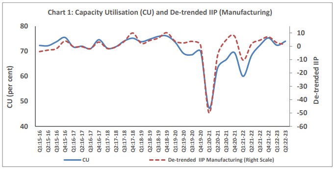 Aggregate level capacity utilisation for the manufacturing sector improved to 74% in the second quarter of FY23 from 72.4% in the previous quarter, the survey findings, released on Wednesday, highlighted.