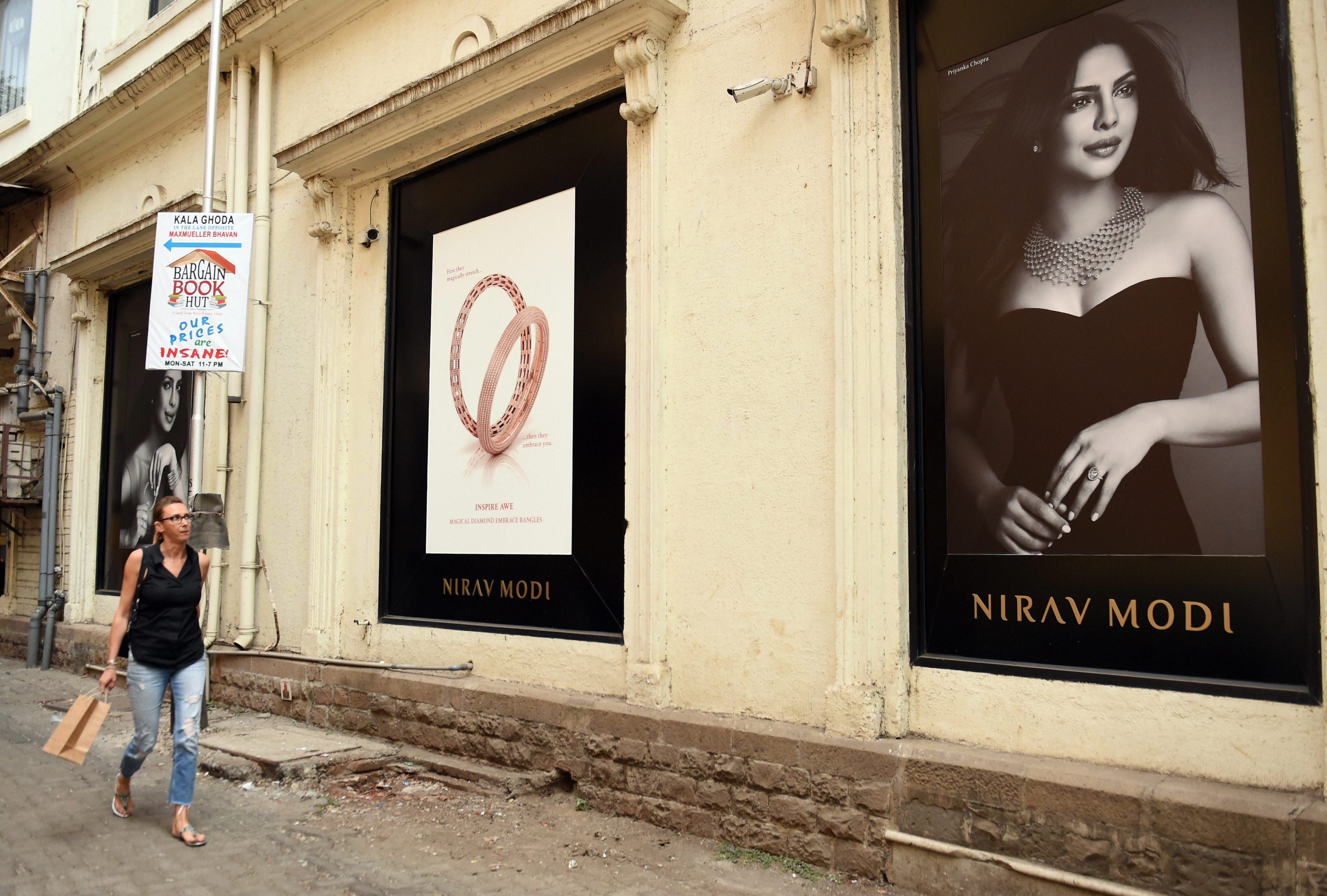 A woman walks near a Nirav Modi jewellery showroom at Kala Ghoda in Mumbai. Enforcement Directorate is conducting searches at Nirav Modis home, showrooms and offices in Mumbai. (Source: PTI)