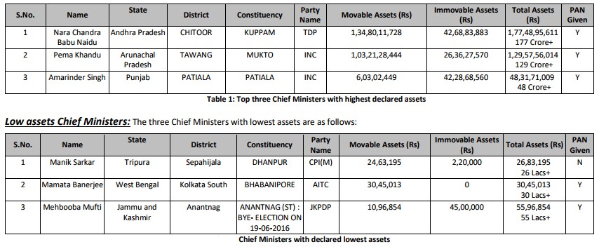 Andhra Pradesh Chief Minister Chandrababu Naidu is the richest CM in India with assets of Rs 177.48 crore, according to a latest report by Association of Democratic Reforms (ADR).