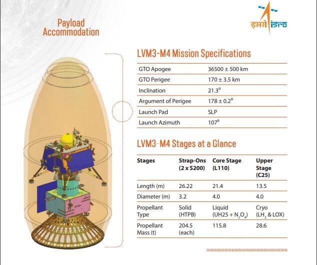 Mission brochure: https://t.co/cCnH05sPcW pic.twitter.com/oqV1TYux8V"Chandrayaan-3, India's third lunar exploration mission is ready to take off in the fourth operational mission (M4) of the LVM3 launcher. ISRO is crossing new frontiers by demonstrating soft landing on the lunar surface by its lunar module and demonstrate roving on the lunar terrain," the brochure said.