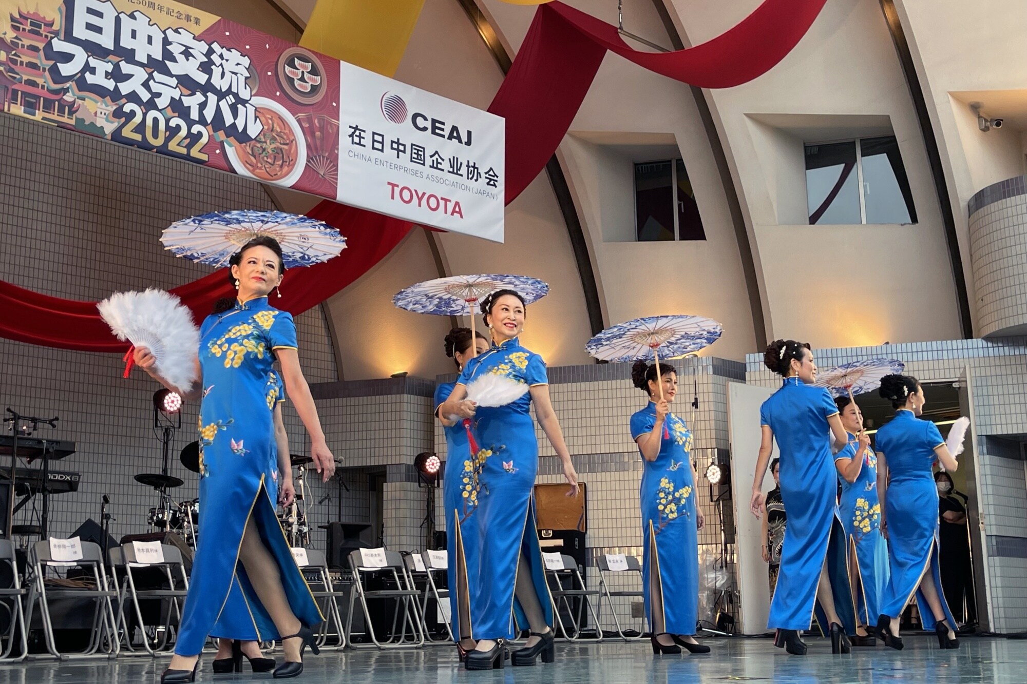 (Bloomberg) -- Women dancing in swirling costumes, musicians, food vendors and even a former prime minister battled to generate a festive atmosphere at an event marking the 50th anniversary of ties between Japan and China, held in a rain-sodden Tokyo park last Saturday.