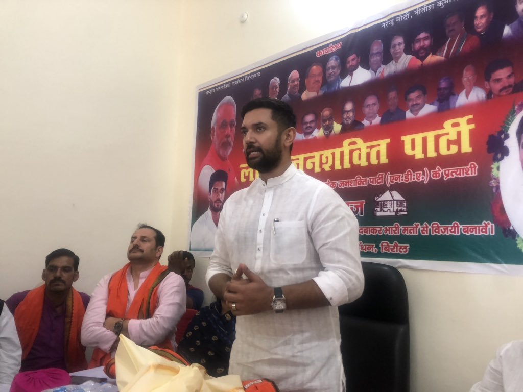 Chirag Paswan meets with NDA workers in Block Virol’s office in Samastipur. (Verified Twitter account of Chirag Paswan)