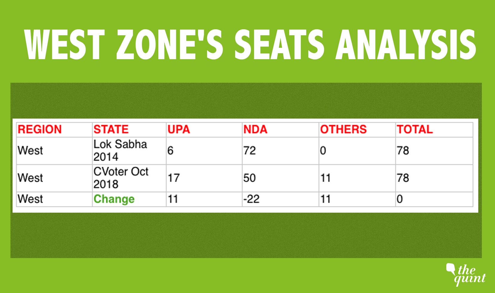 In the 2014 elections, the BJP-led NDA (including Shiv Sena) polled almost 54 percent votes in the west zone while the Congress-led UPA polled 34 percent (including NCP). As of 16 November as per the tracker, the UPA (which essentially means Congress without NCP) is polling 32 percent and the NDA (which essentially means BJP without Shiv Sena) is polling about 44 percent.