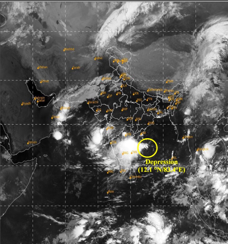Cyclone Alert For Chennai: As per the latest update shared by India Meteorological Department (IMD), the depression over the southwest Bay of Bengal moved west-northwestwards with a speed of 12 kmph during past 6 hours and lay centered at 0830 hours IST of today, October 16 over the same region, about 320 km east-southeast of Chennai (Tamil Nadu), 350 km east of Puducherry and 400 km southeast of Nellore (Andhra Pradesh).