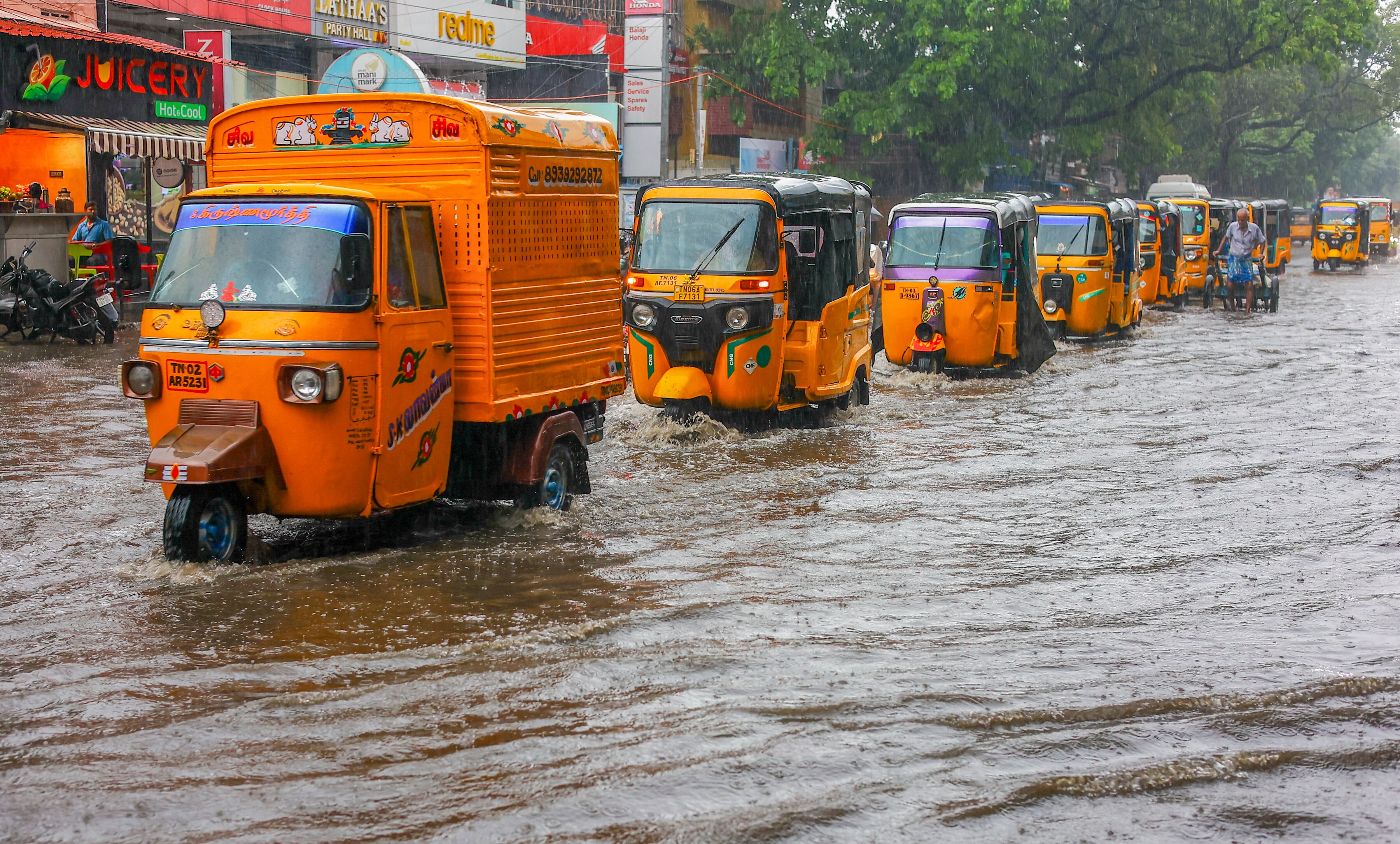 Rains lashed several parts of Tamil Nadu on Tuesday, and the India Meteorological Department has forecast heavy rainfall for three more days in the state, starting Nov. 27, when the deep depression is likely to become a cyclonic storm Fenel.