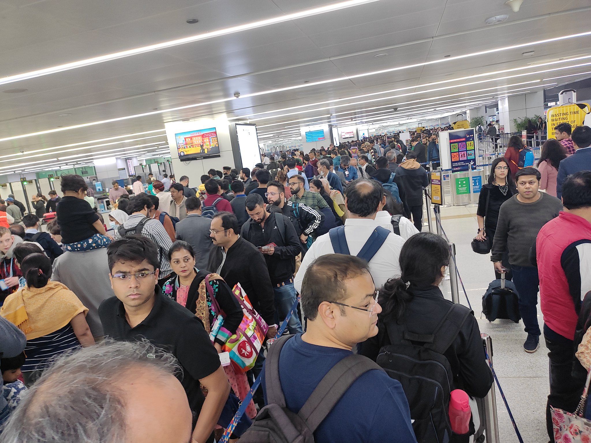 Massive congestion at @DelhiAirport especially terminal 3@JM_Scindia at the airport inspecting the situation