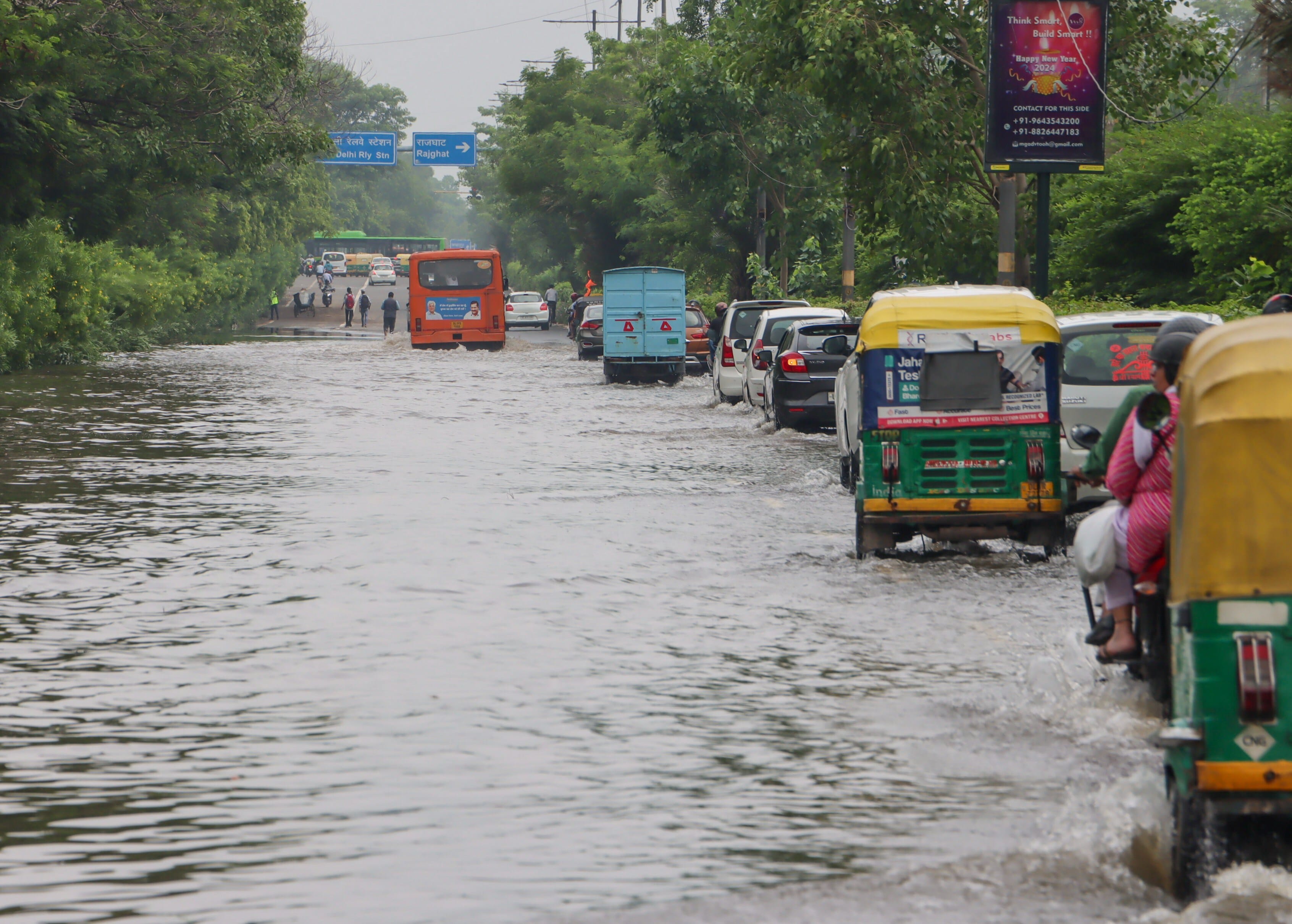 Visuals from south Delhi's Qutub Minar area showed vehicles wading through waterlogged roads while police tried to manage traffic.