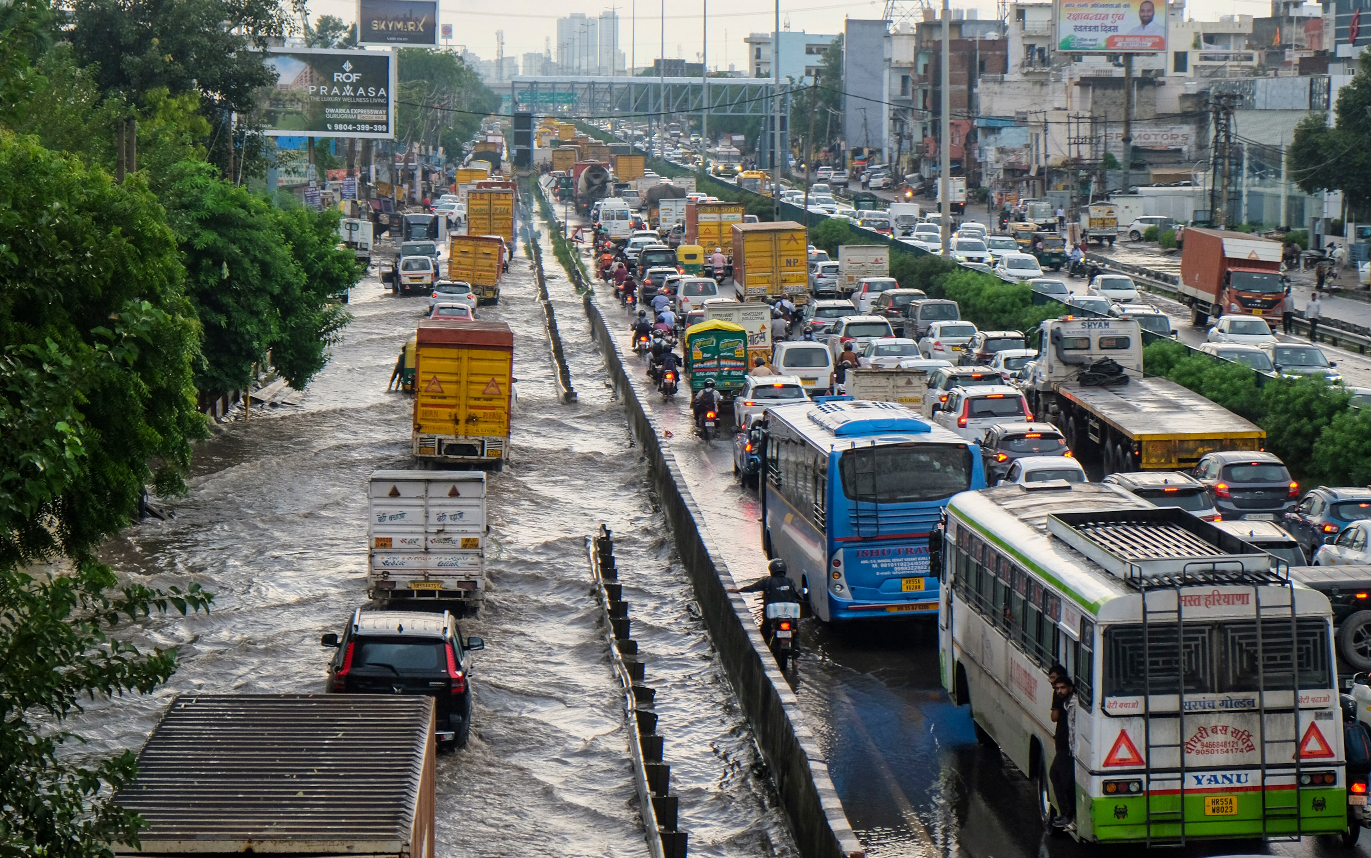 Vehicles stuck in a traffic jam on the Delhi-Gurugram Expressway following rainfall, in Gurugram, Tuesday, Aug. 26, 2025. (PTI Photo)