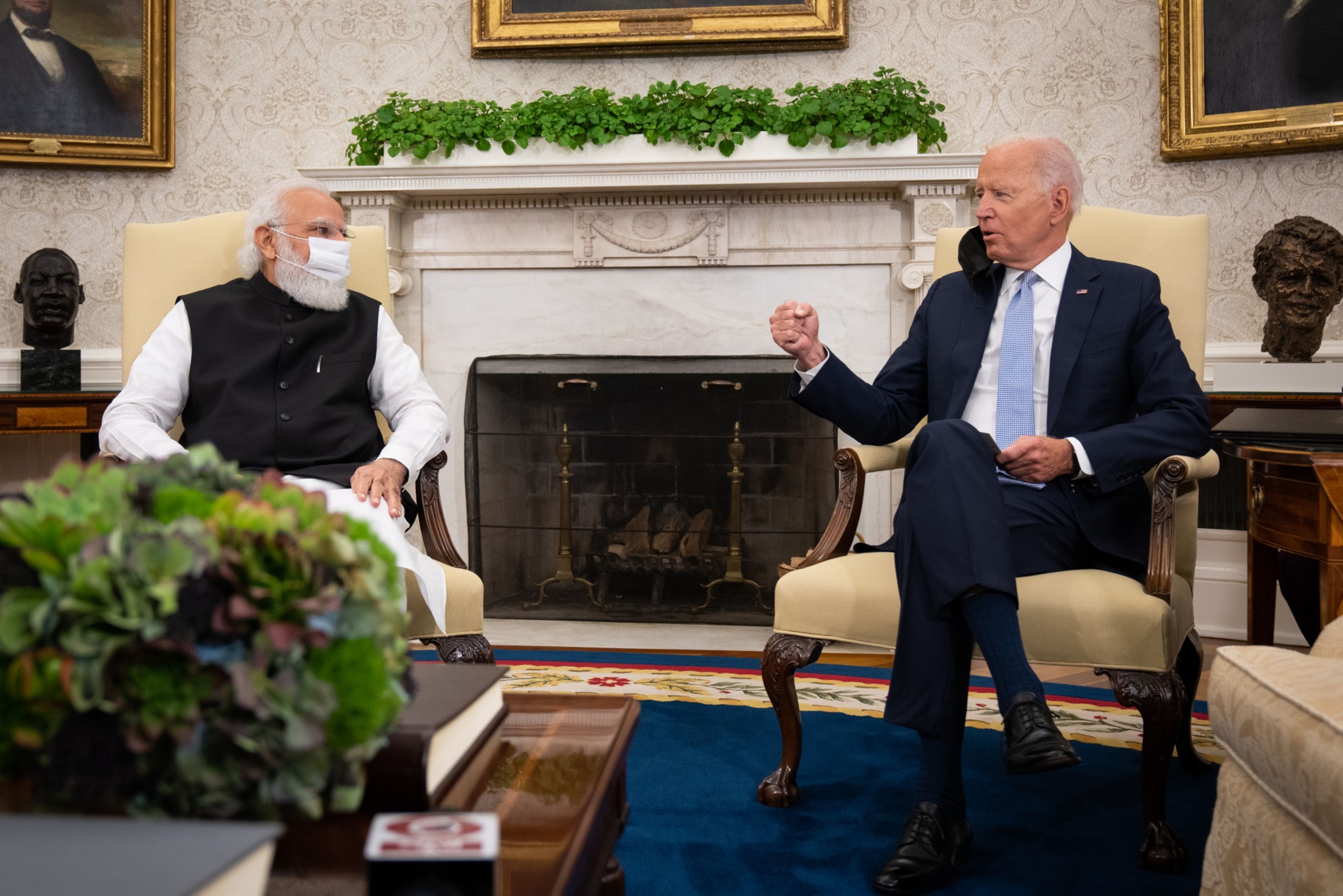 U.S. President Joe Biden, with Indian Prime Minister Narendra Modi, at the Oval Office of the White House in Washington, D.C., on Sept. 24, 2021. (Photographer: Sarahbeth Many/The New York Times/Bloomberg)