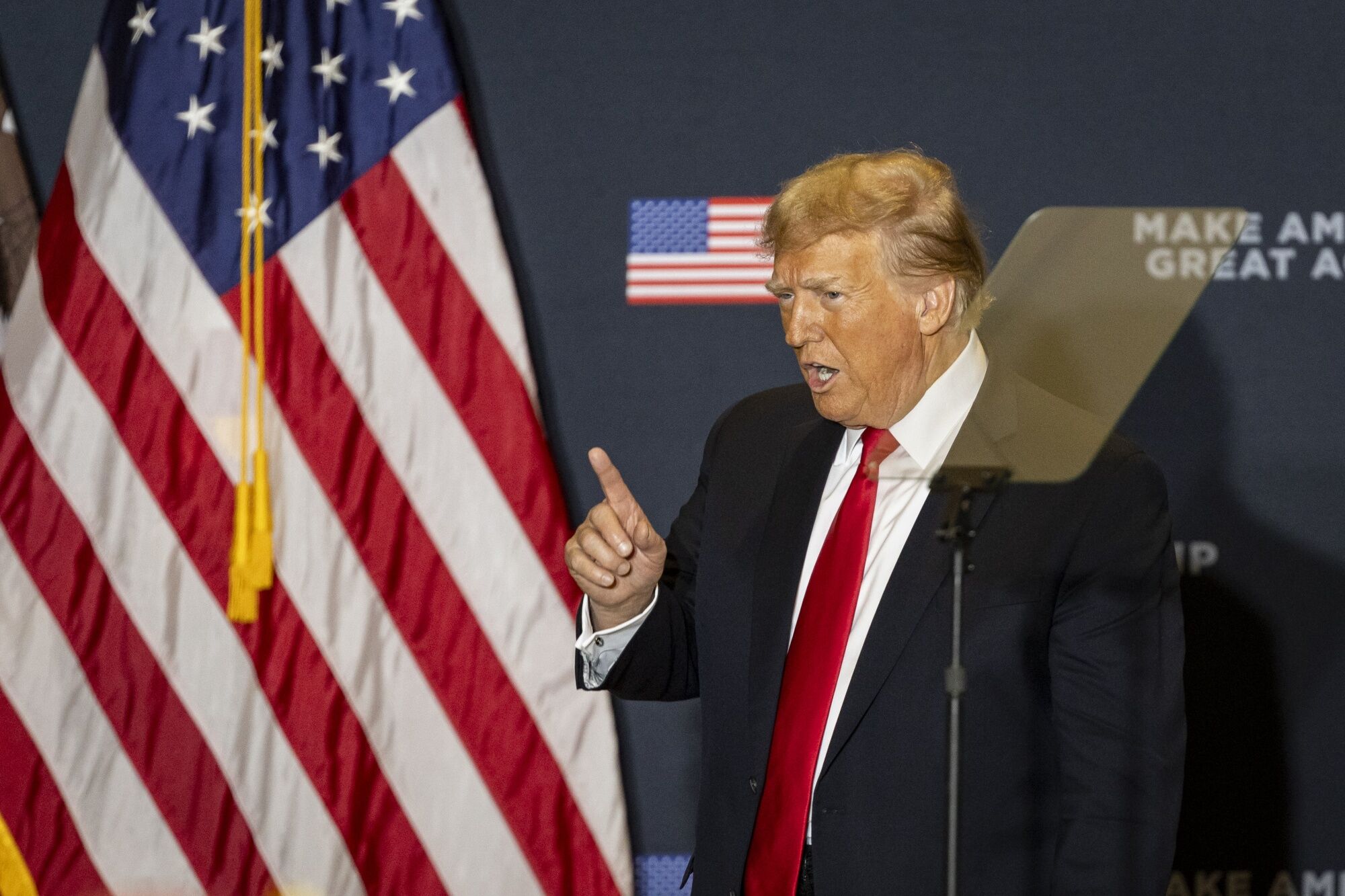 Former US President Donald Trump during a campaign rally in Coralville, Iowa, U.S.
