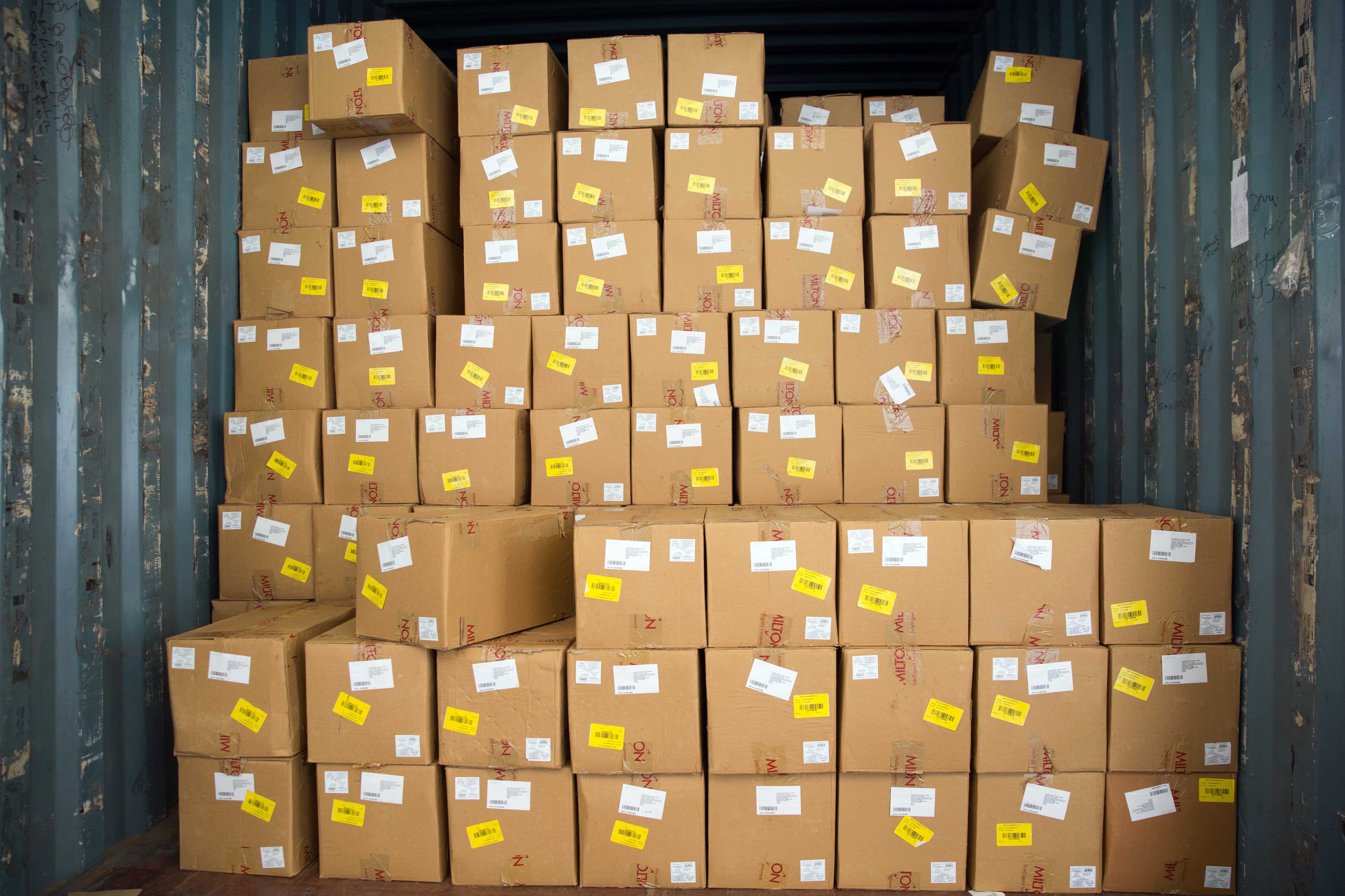 Stacked boxes sit loaded on an outbound truck at the Amazon Inc. fulfillment center in Bengaluru, India. (Photographer: Ruhani Kaur/Bloomberg)