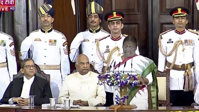 The oath-taking ceremony was marked by pomp and grandeur, and began with the arrival of outgoing President Ram Nath Kovind and Murmu in a procession from the Rashtrapati Bhavan to the Parliament building.