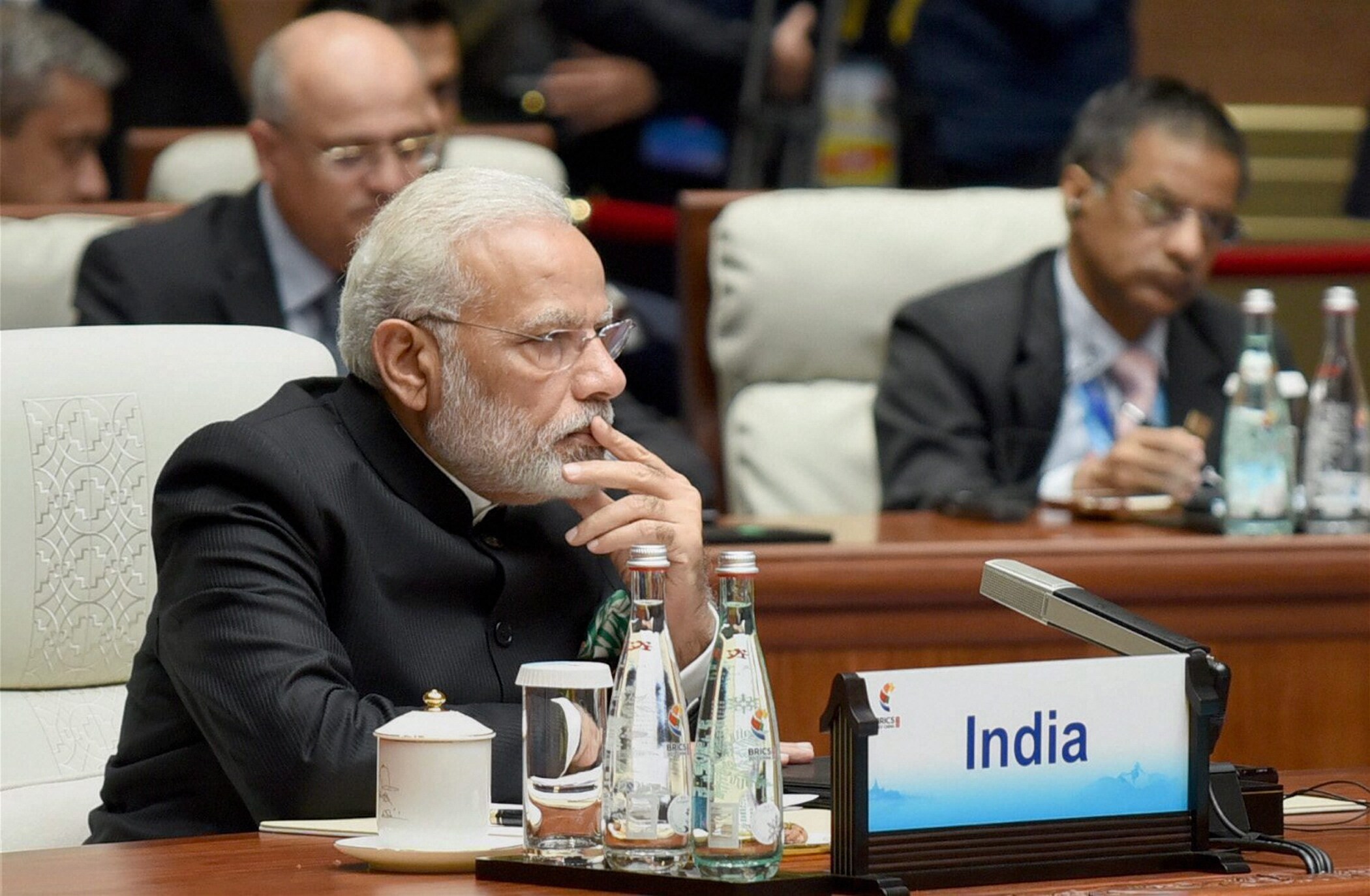 Prime Minister Narendra Modi at the plenary session of the 9th BRICS Summit in Xiamen, China. (Source: PTI)
