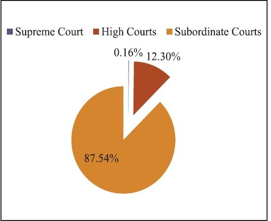 Civil cases contribute a mere 28.38 percent to the total pendency in district and subordinate courts as on May 31, 2019, whereas criminal cases contribute about 71.62 percent. It is clear that the number of unresolved criminal disputes outweigh civil disputes, the survey said.
