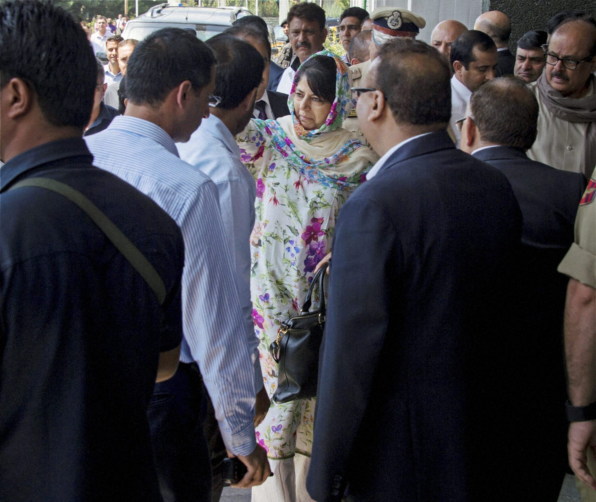 Jammu and Kashmir chief minister Mehbooba Mufti arrives for a meeting with All Party Parliamentary Delegation at SKICC in Srinagar on Sunday. (Photographer: S Irfan/PTI)