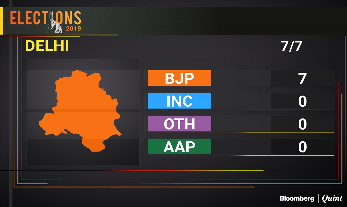 Prime Minister Narendra Modi's party cornered more than 50 percent of the votes polled in all the parliamentary constituencies in the city state, according to the Election Commission's website. Cricketer Gautam Gambhir won by more than 3.9 lakh votes and singer Hans Raj Hans defeated his nearest rival by 5.5 lakh votes.