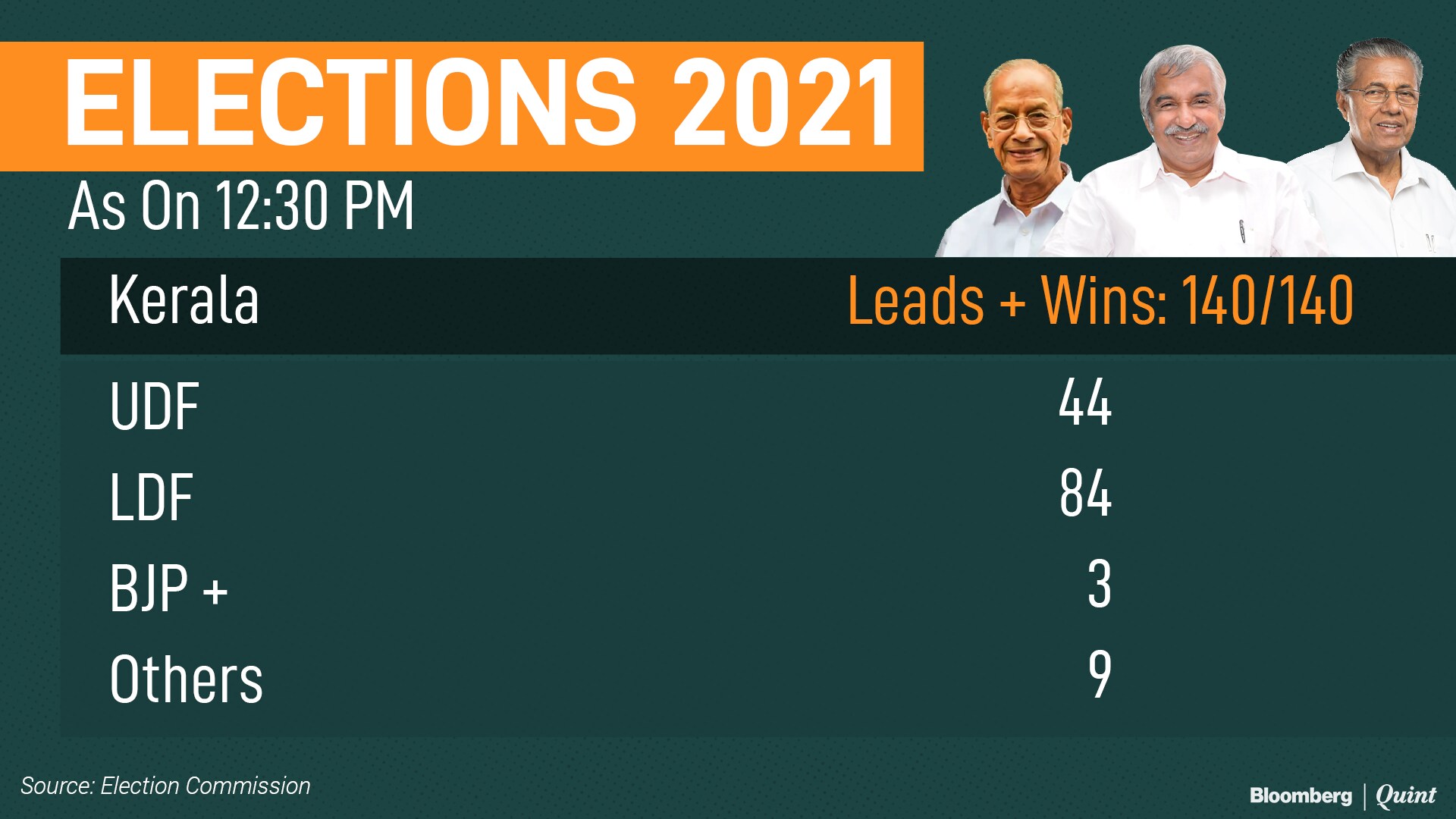 In the preliminary rounds of counting across Kerala's 140 constituencies, the Left Democratic Front has posted leads in 87 constiutencies, while the Congress-led United Democratic Front is ahead in 48, reports The Quint. The BJP is shown leading in 4 seats.