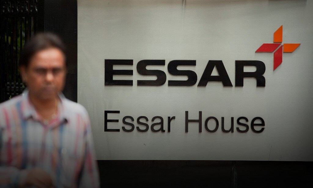 A pedestrian passes in front of the Essar Group corporate offices in Mumbai, India (Photographer: Prashanth Vishwanathan/Bloomberg)