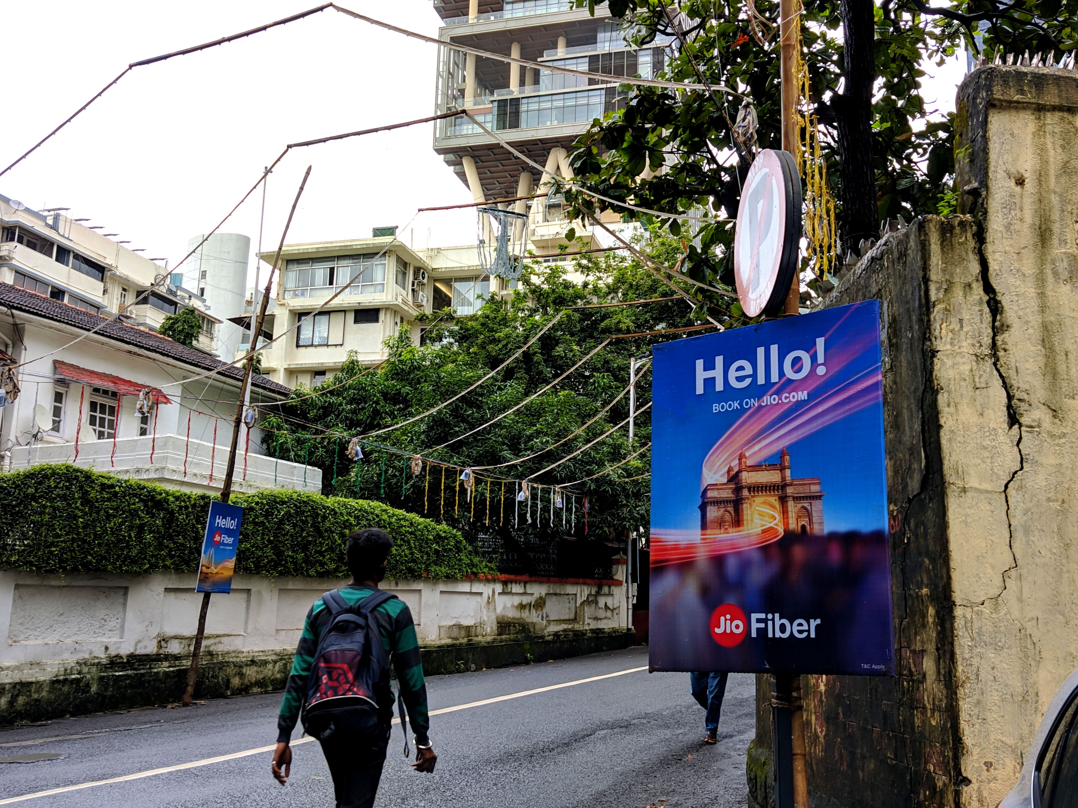 A Jio Fiber advert in Mumbai, near Ambani’s house Antilla. (Photo: BloombergQuint)