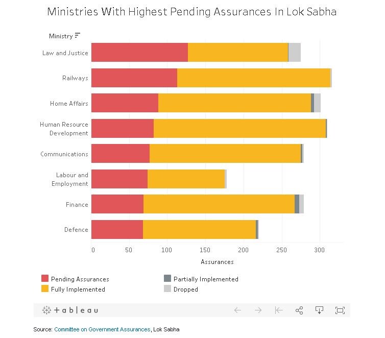 More than a quarter (28.6 percent) of all assurances given during the 16th Lok Sabha (2014-2019) are pending, as compared to 6 percent in 2009-2014. In all, the Bharatiya Janata Party-led government made 5,383 assurances of which 1,540 have been pending over the last five years.
