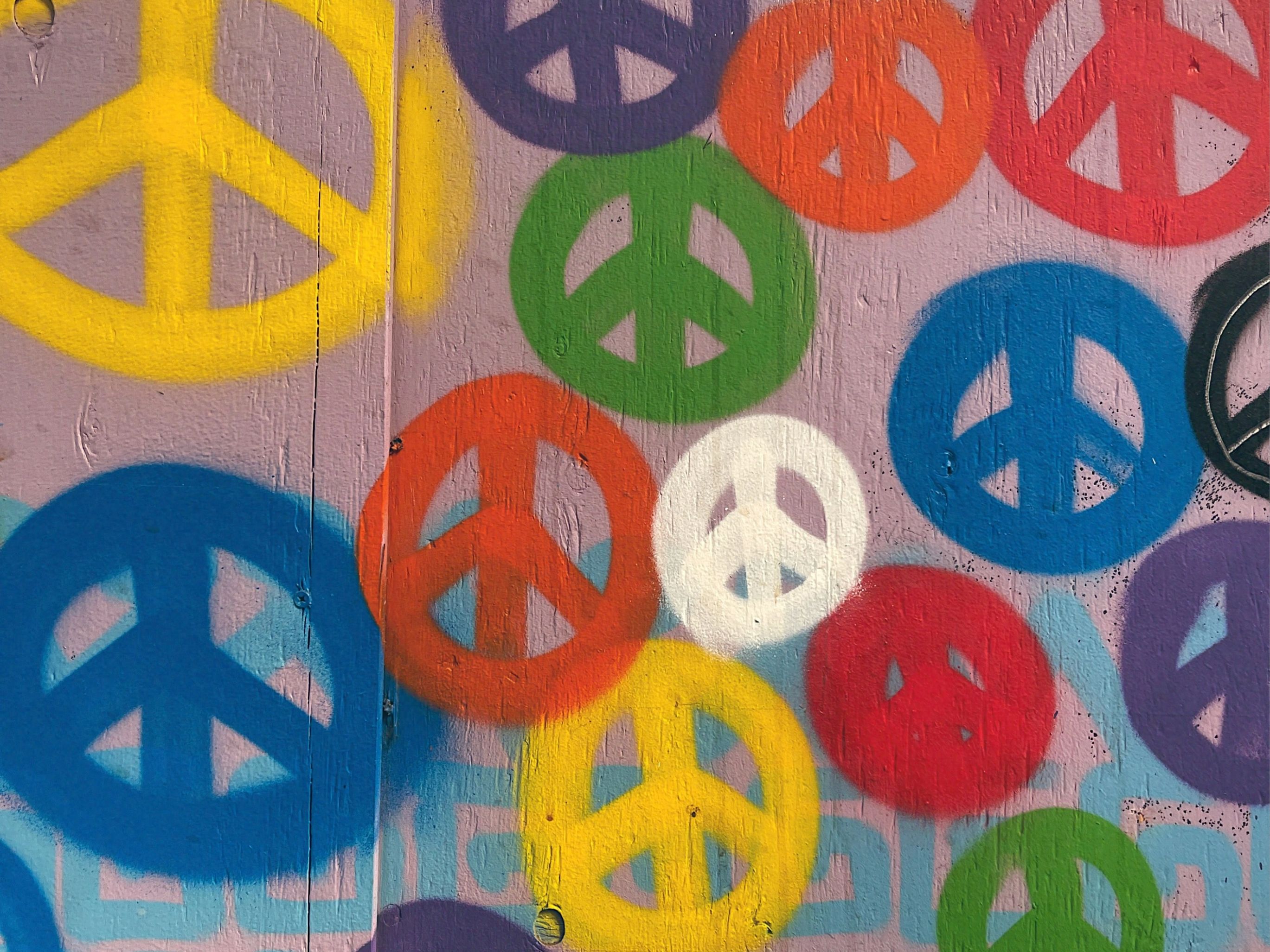 Peace symbols are painted on a wall. (Photo: Jon Tyson/Unsplash)