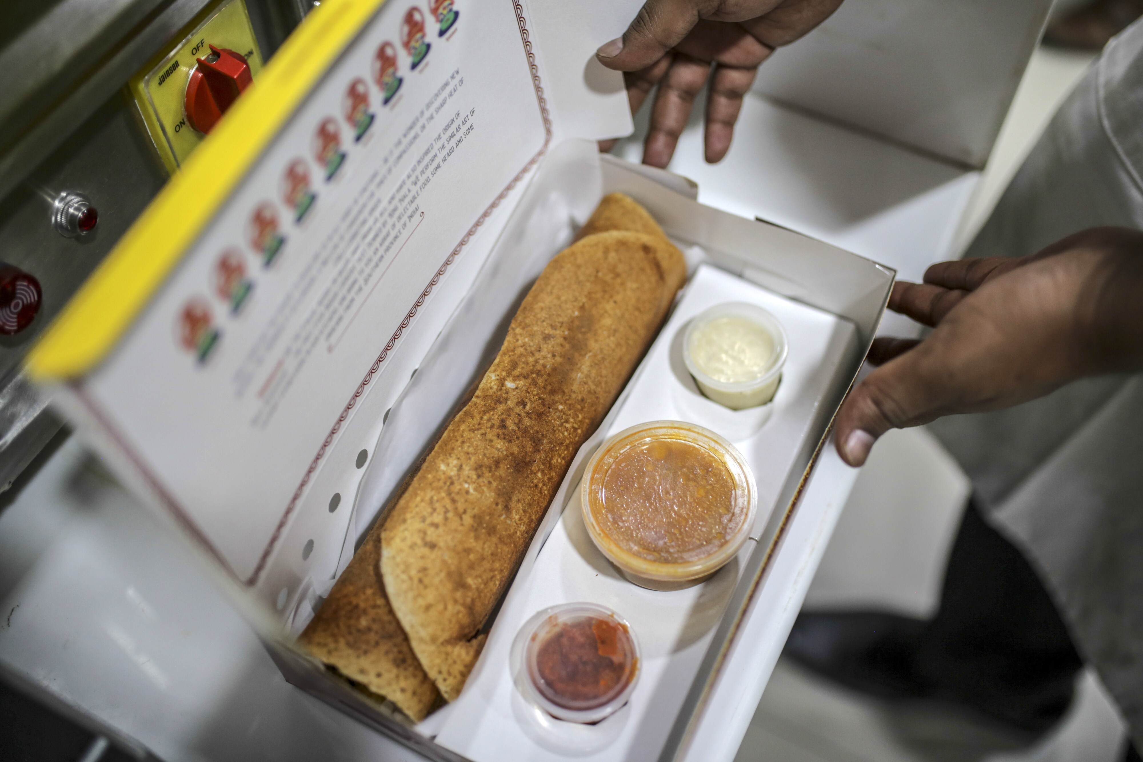 An employee prepares a dosa order in Mumbai, India. (Photographer: Dhiraj Singh/Bloomberg)