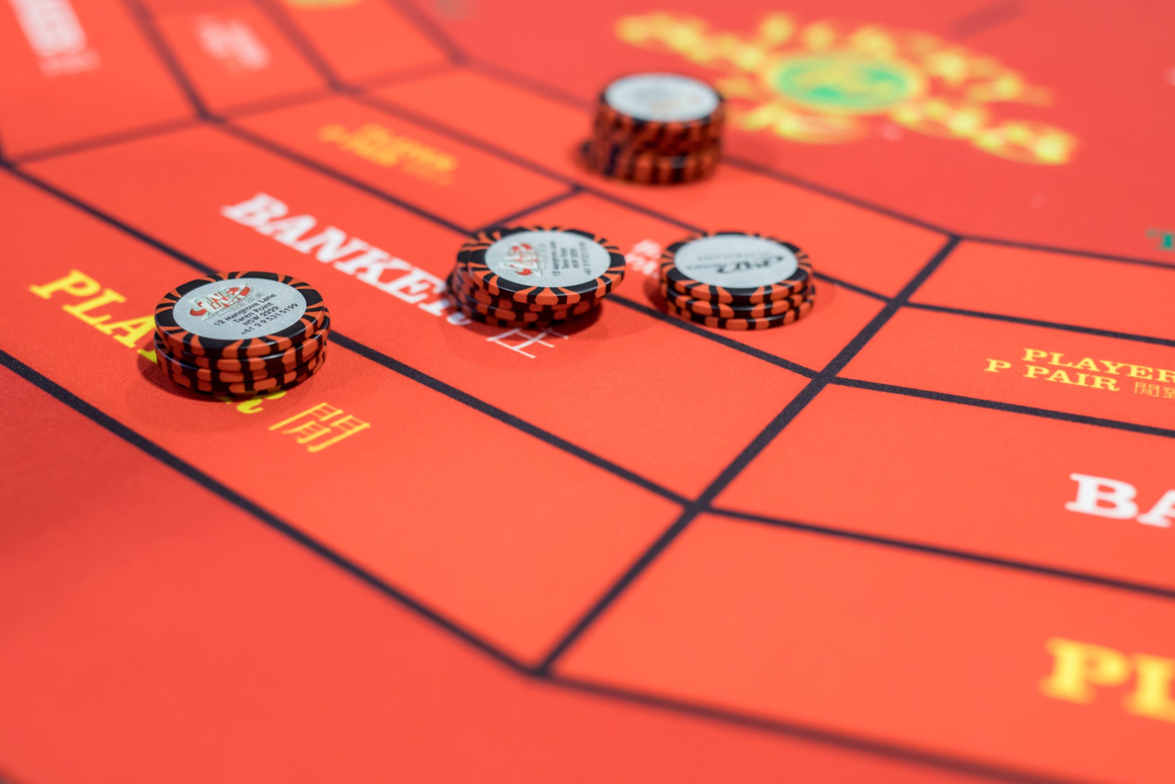 Gaming chips sit on a table during the Global Gaming Expo Asia (G2E Asia) in Macau, China. (Photographer: Paul Yeung/Bloomberg)
