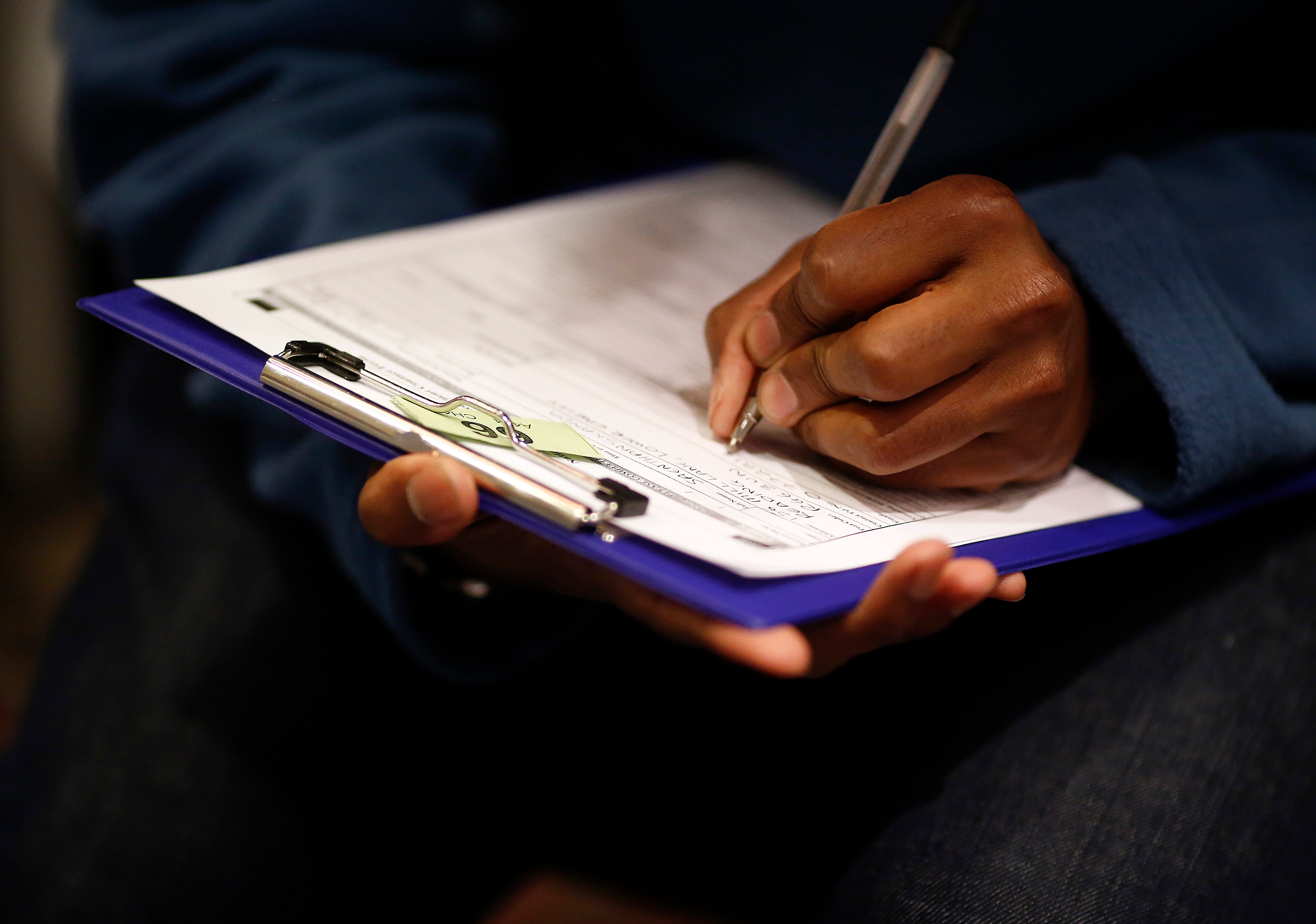 A man completes paperwork. Photographer: Simon Dawson/Bloomberg