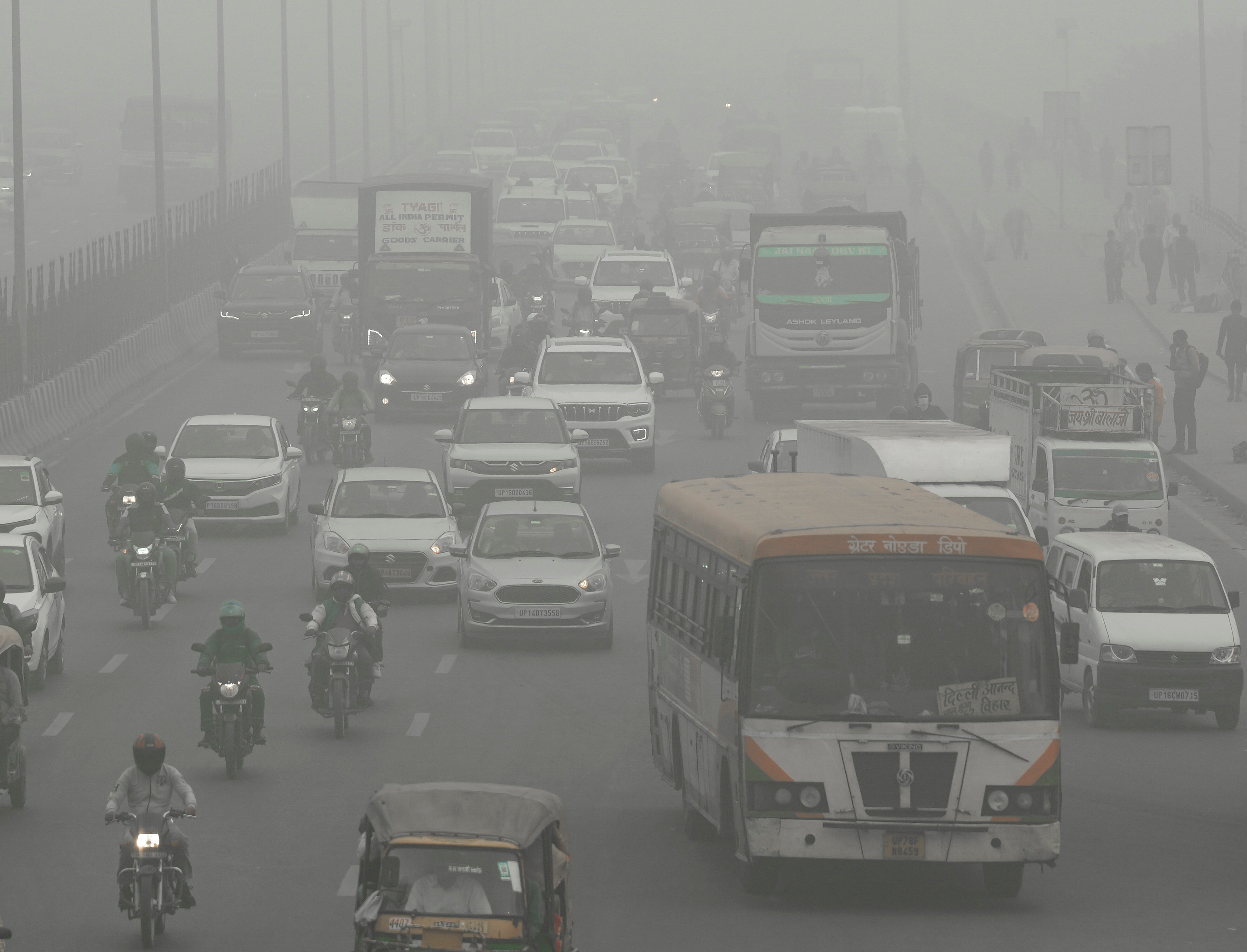Grey clouds of smog have returned in India's national capital with the air quality index ticking downwards to 'poor' for the first time in four months, on the morning of Oct. 14, 2025.
